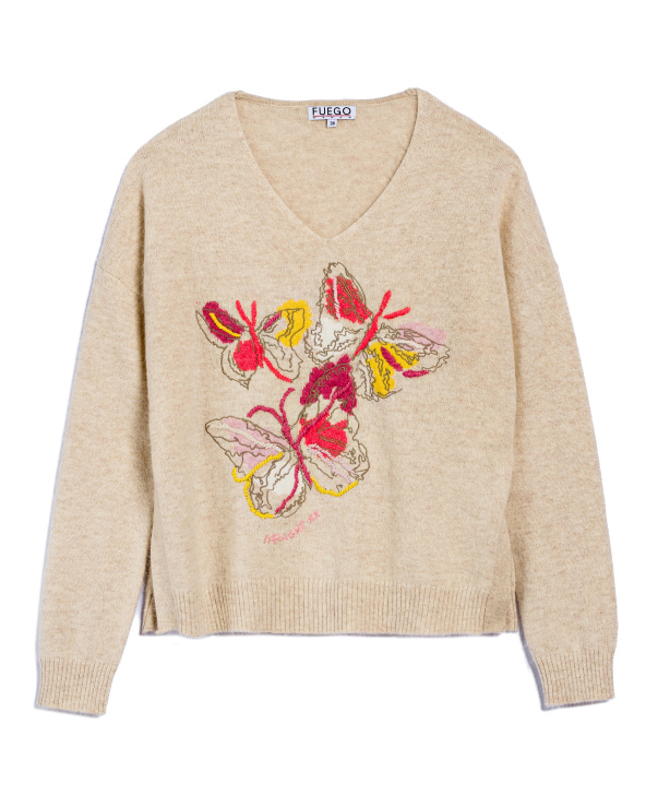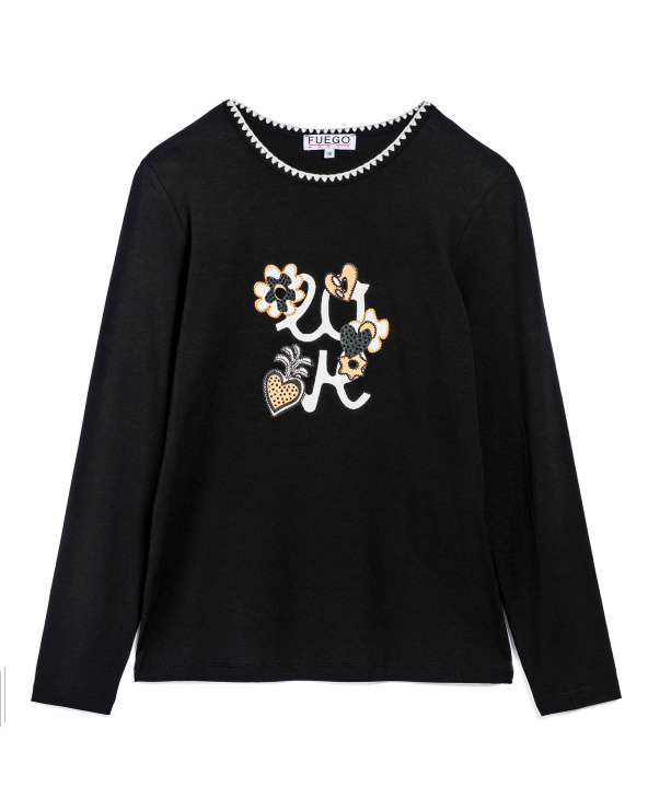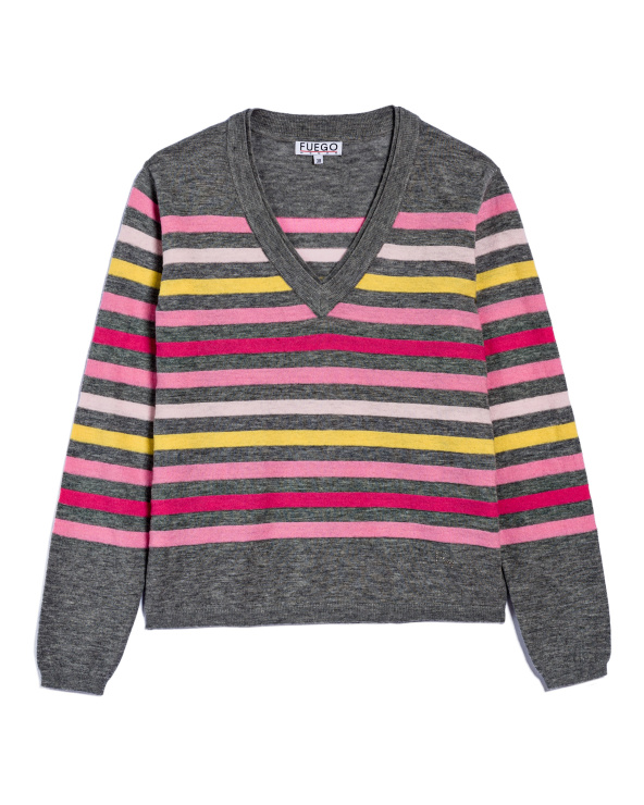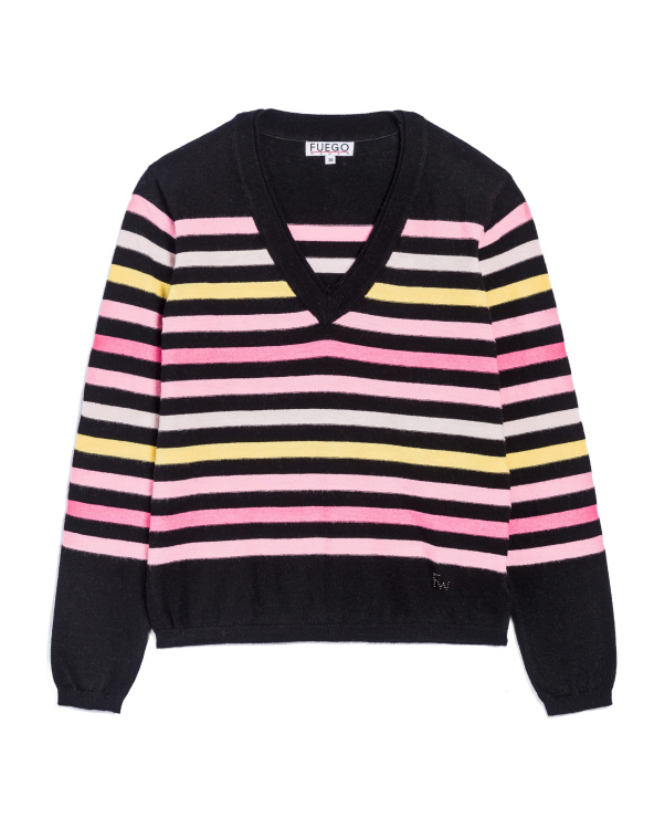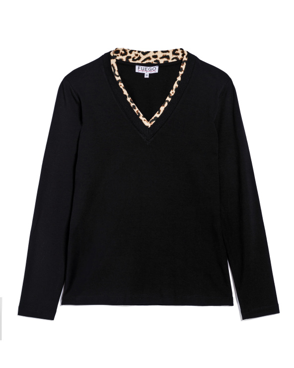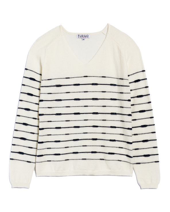 - Coupe droite - Encolure V - Rayure brodé - Finition côtelé